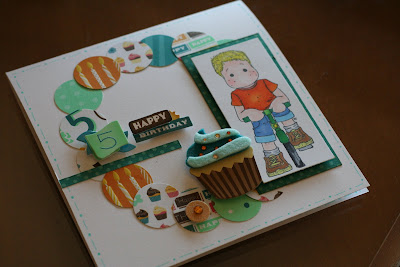 También de cupcake le hice una tarjeta de cumpleaños a Pablo, ya que esta semana celebramos su cumple con los amigos del cole.